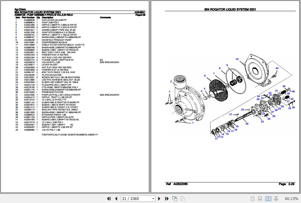 Ag-Chem 854 Liquid System Parts Catalog AG546541