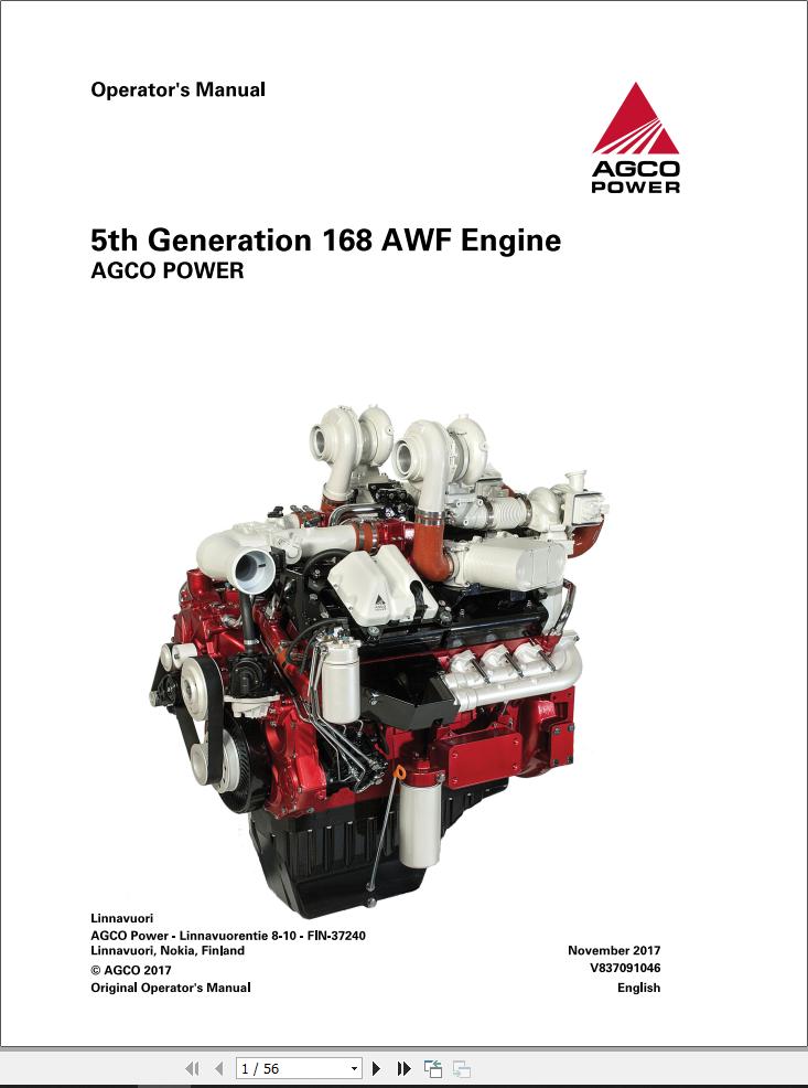 AGCO Engine 5th Generation 168AWF Operators Manual V837091046