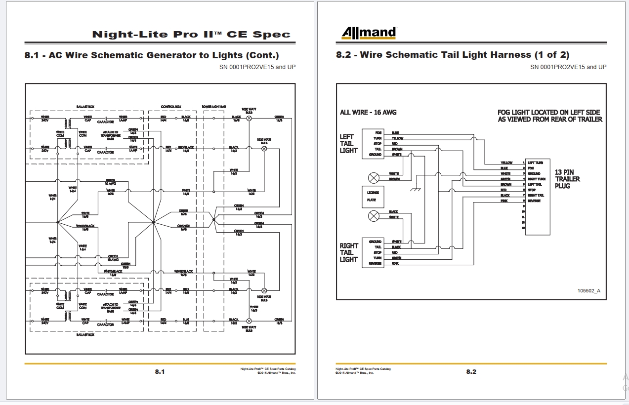 Allmand Light Tower Night-Light Pro II 50Hz 60Hz Schematic Manual with Cover 108811 2016 PDF