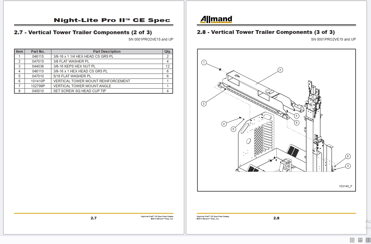 Allmand Light Tower CE SPEC Night-Lite Pro II Parts Manual with Cover 106808 2015 PDF