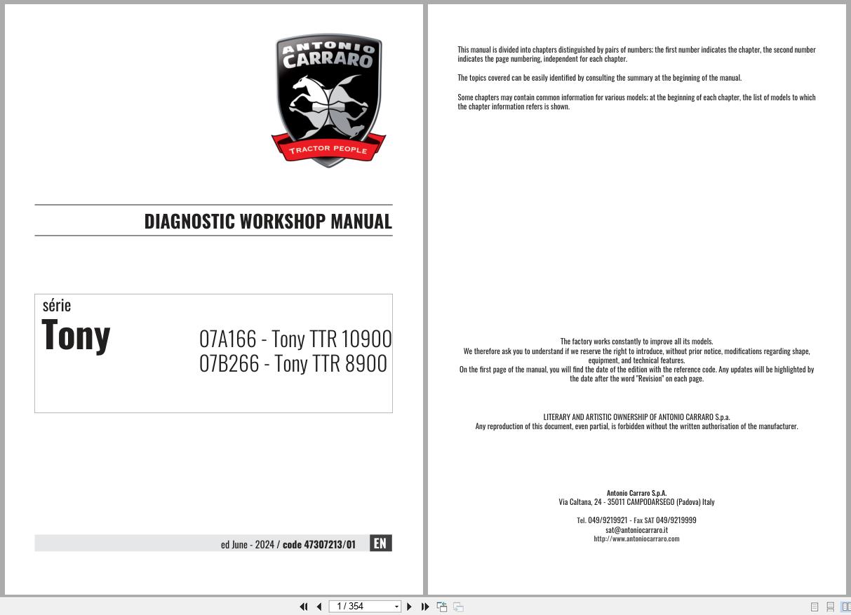 Antonio Carraro Tony TTR10900 TTR8900 Diagnostic Workshop Manual 47307213_01 EN