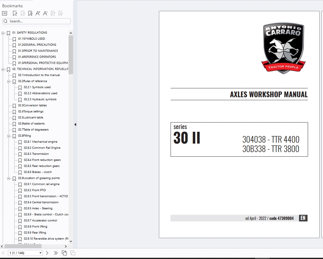 Antonio Carraro Tractor Tigre 3800F 4400F Axles Workshop Manual 47309063 PDF