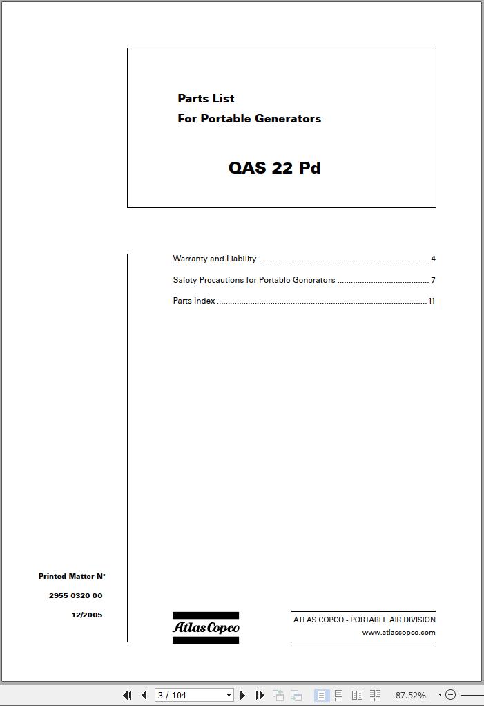 Atlas Copco QAS 22 Pd Spare Parts List 2955 0320 00