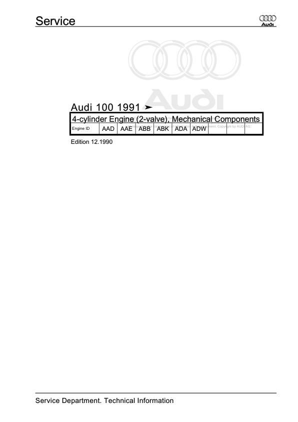 Audi 100 1991 - 1997 100 100 Avant 4A 4A2 4A5 Workshop Manual