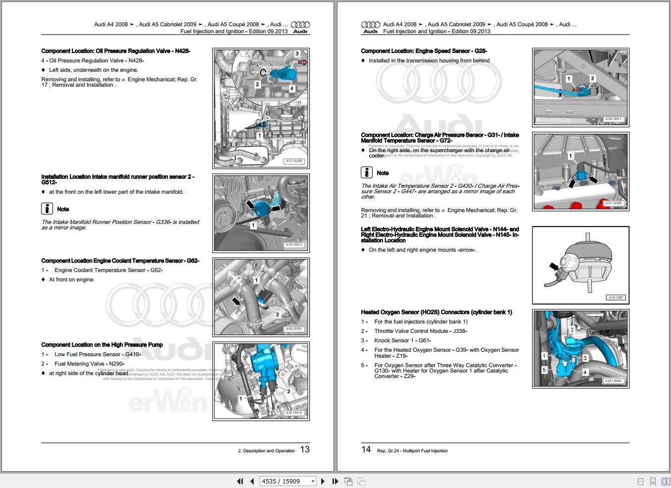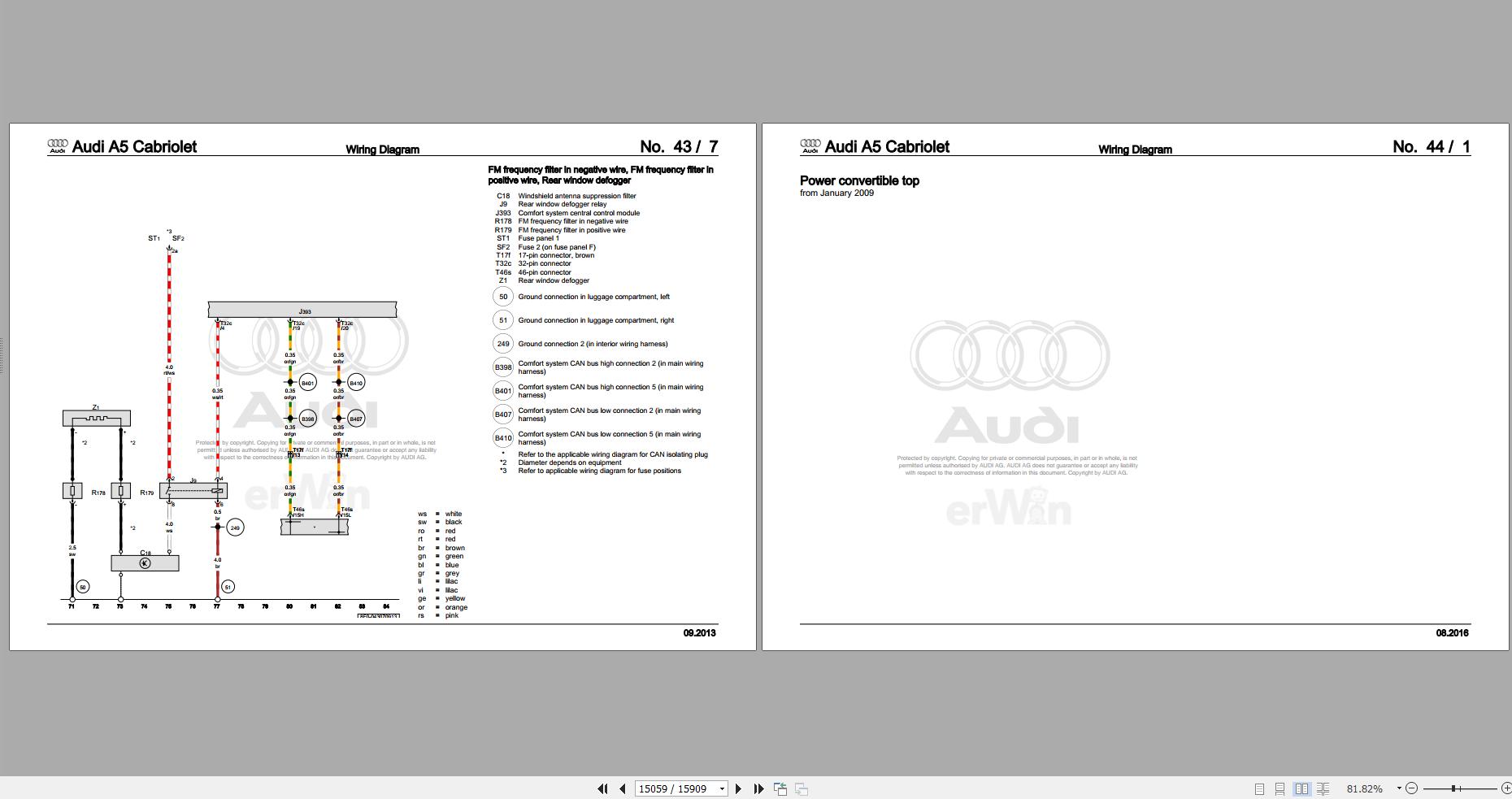 Audi A5 Cabriolet 8F 2010 - 2017 Service Repair Manual and Wiring Diagram