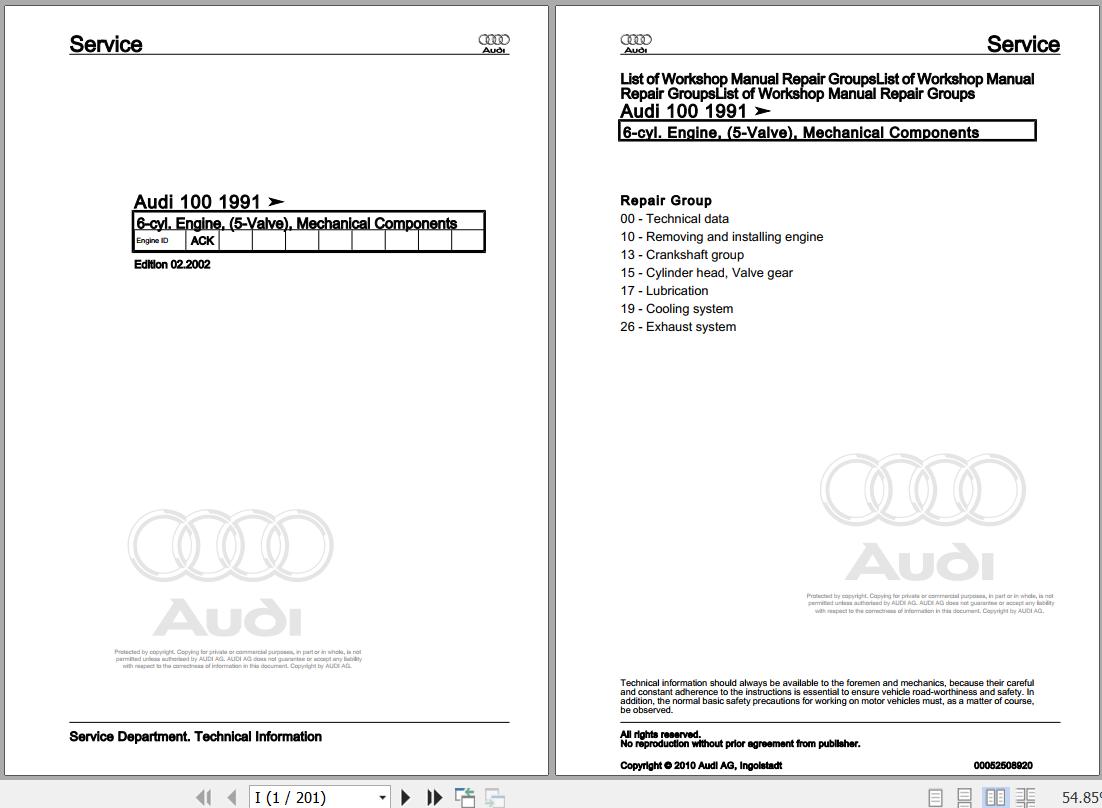 Audi A6 1991 - 1997 4A 4A2 4A5 Workshop Manual