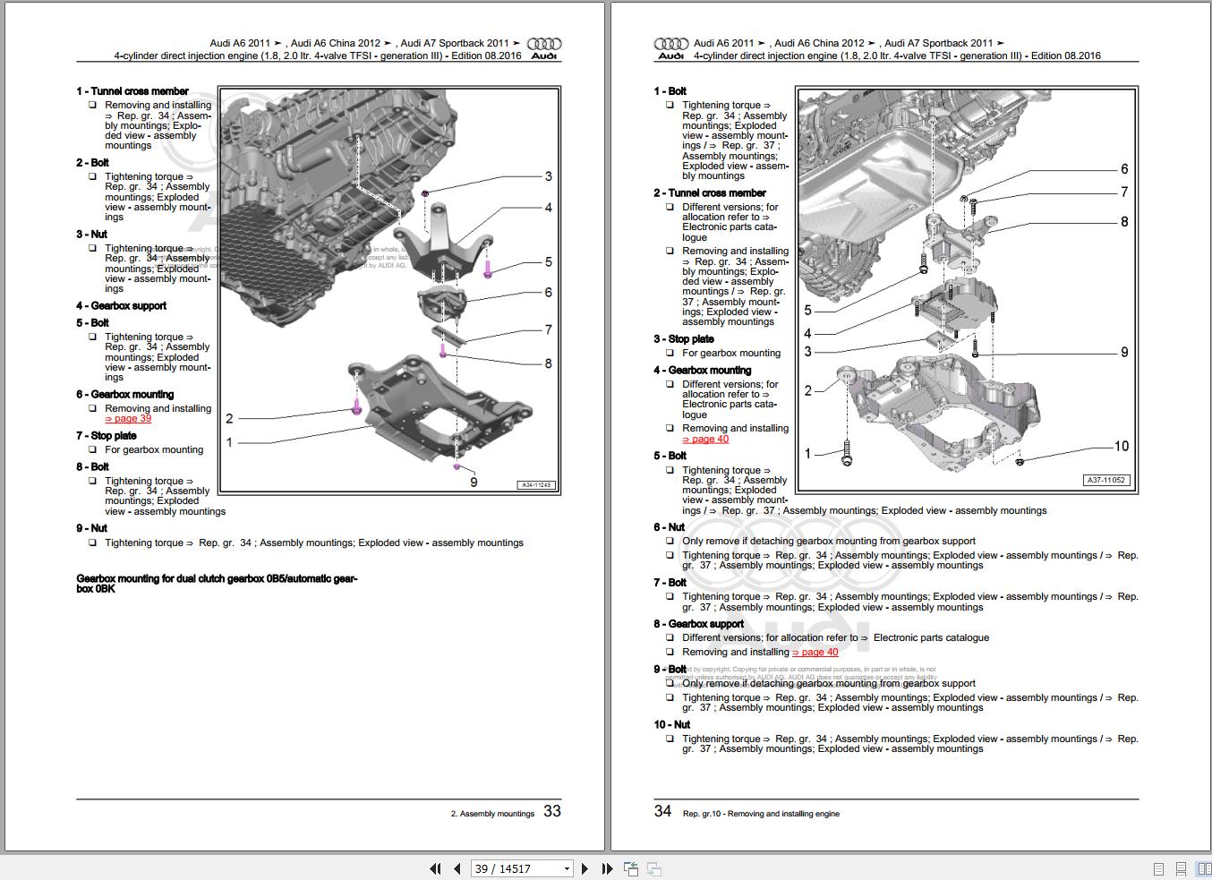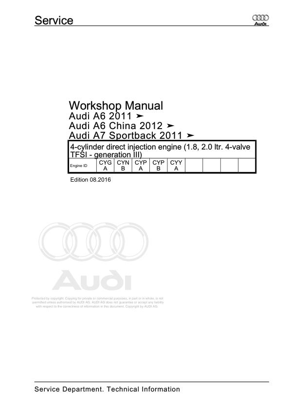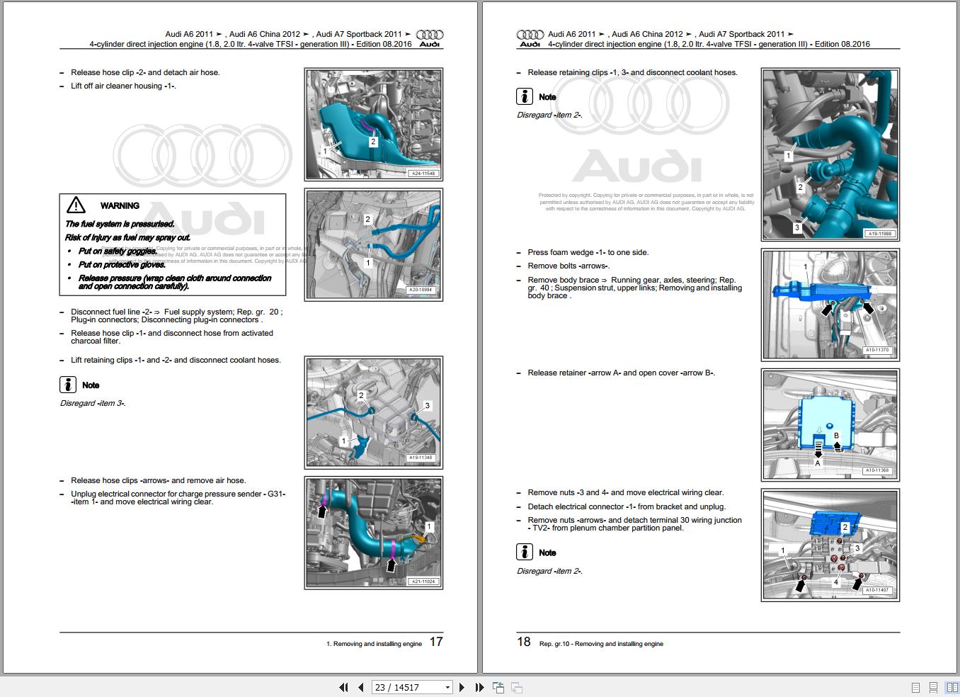 Audi A6 S6 RS6 A7 2015 - 2018 A6 S6 RS6 A7 4GC Workshop Manual and Wiring Diagram