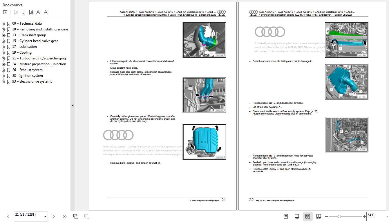 D4B8065FFD6 Servicing 4 Cylinder Engine 2.0 ltr 4 Valve TFSI EA888 Gen III