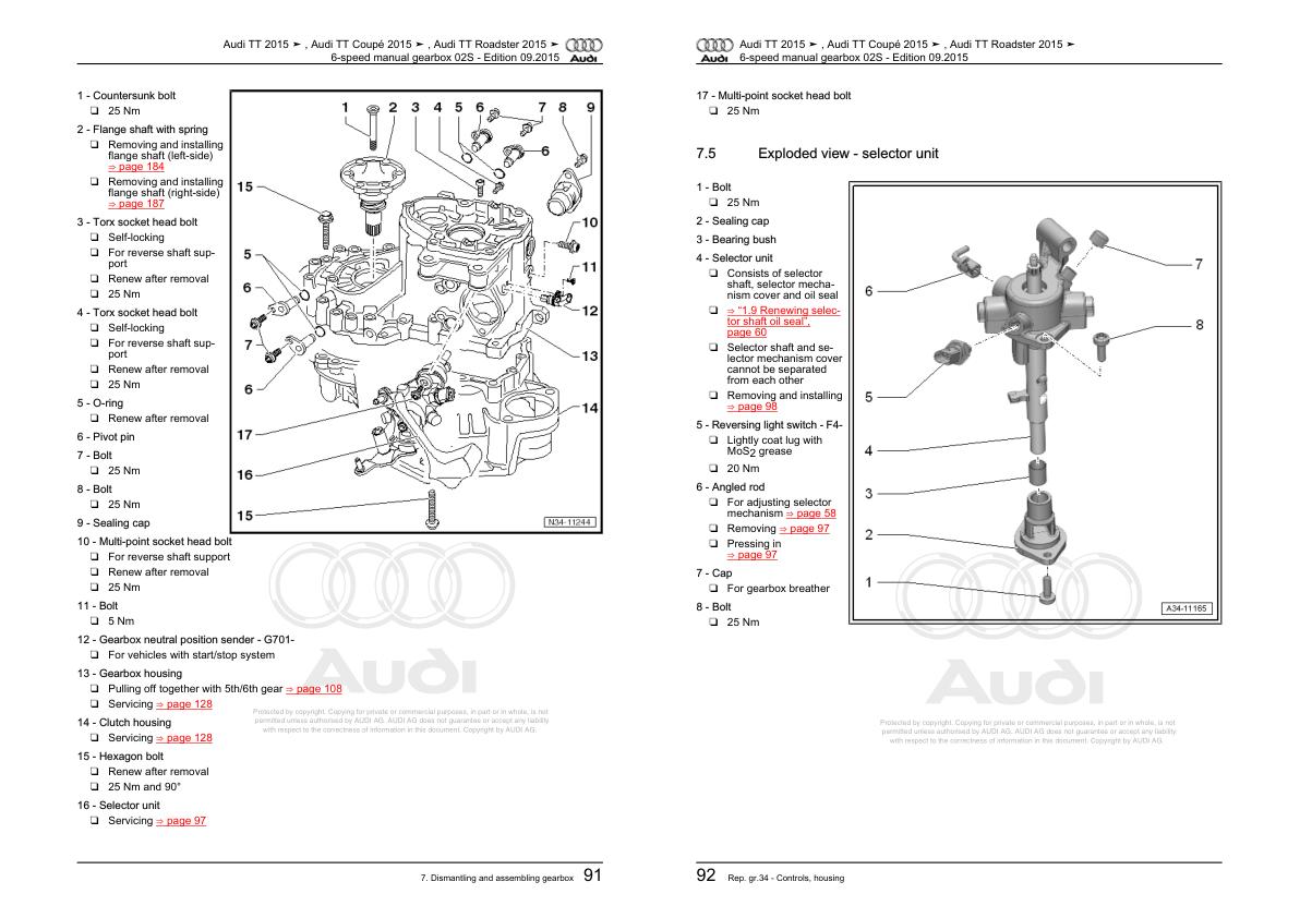 Servicing 6-speed manual gearbox 02Q 0BB 0FB