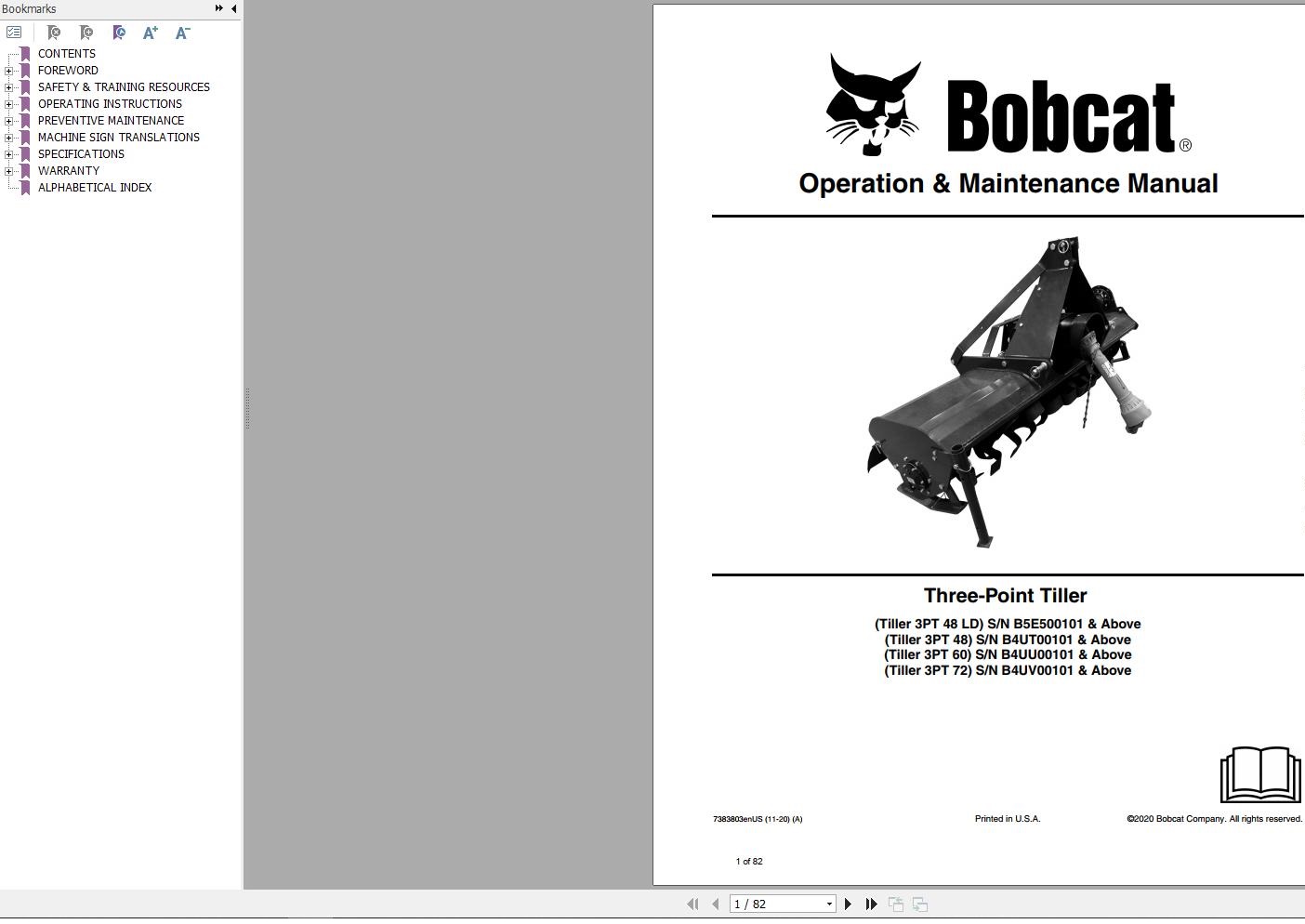The Bookmarks of Bobcat 3PT48 to 3PT72 Three-Point Tiller Operation and Maintenance Manual: