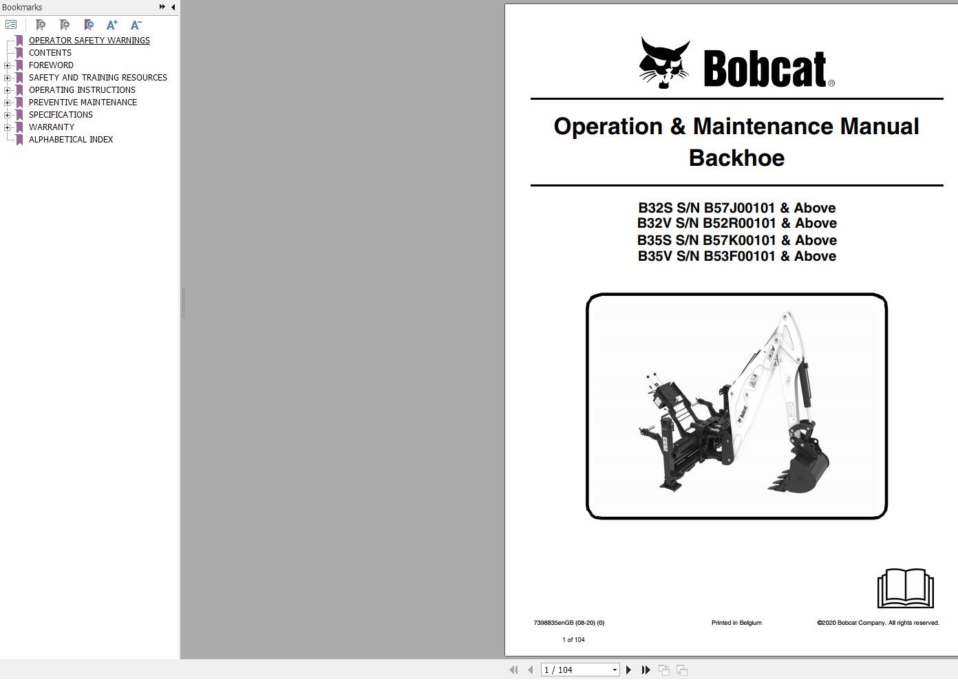 The Bookmarks of Bobcat B32S B32V B35S B35V Backhoe Operation and Maintenance Manual: