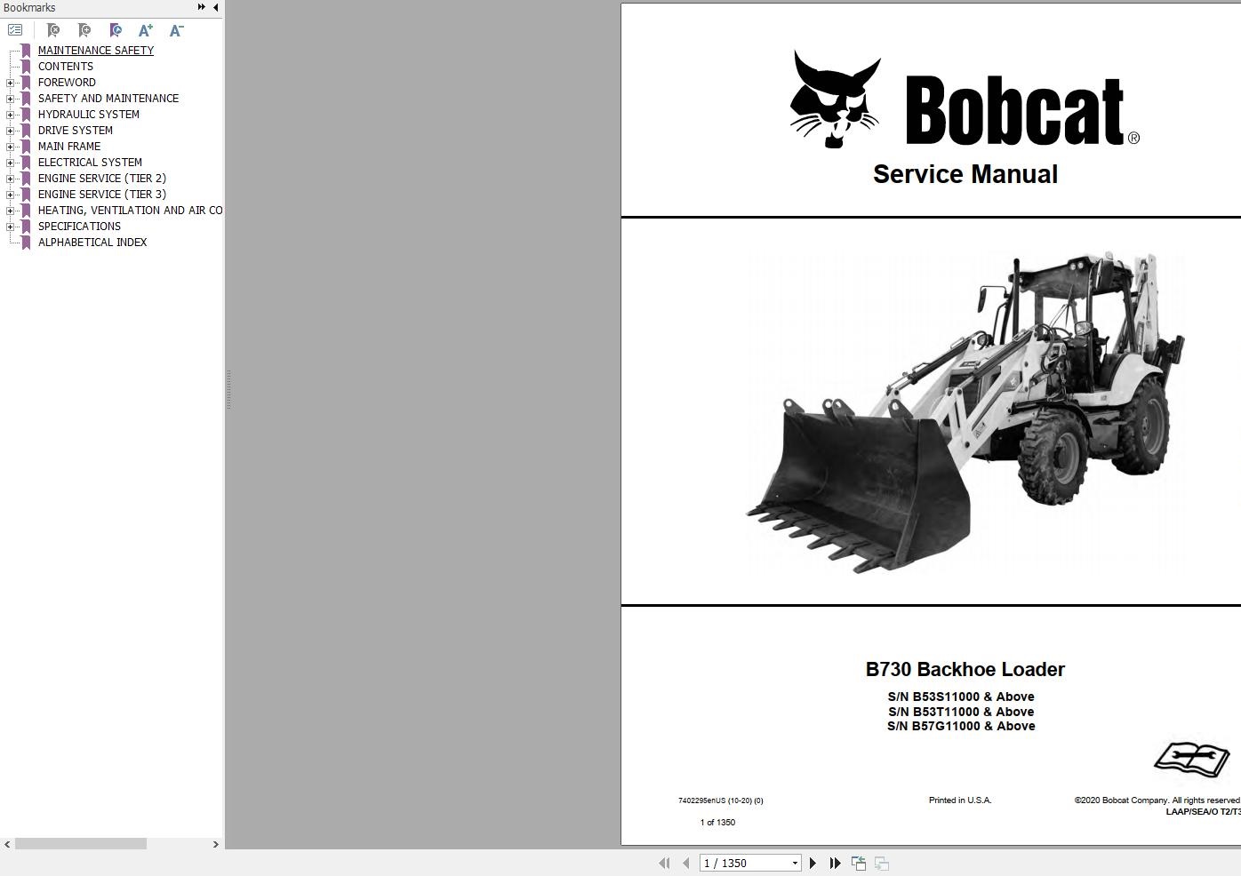 Bobcat B730 Service Manual 7402295 2020 (1350 Pages)