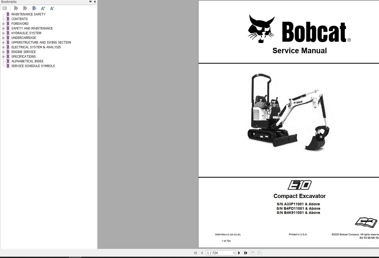 The Bookmarks of Bobcat E10 Compact Excavator Service Manual: