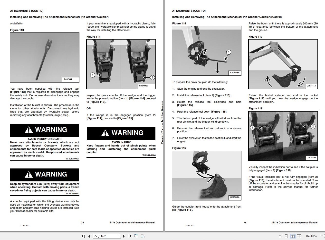 Bobcat E17z Operation And Maintenance Manual 7416736 2020 (158 Pages)
