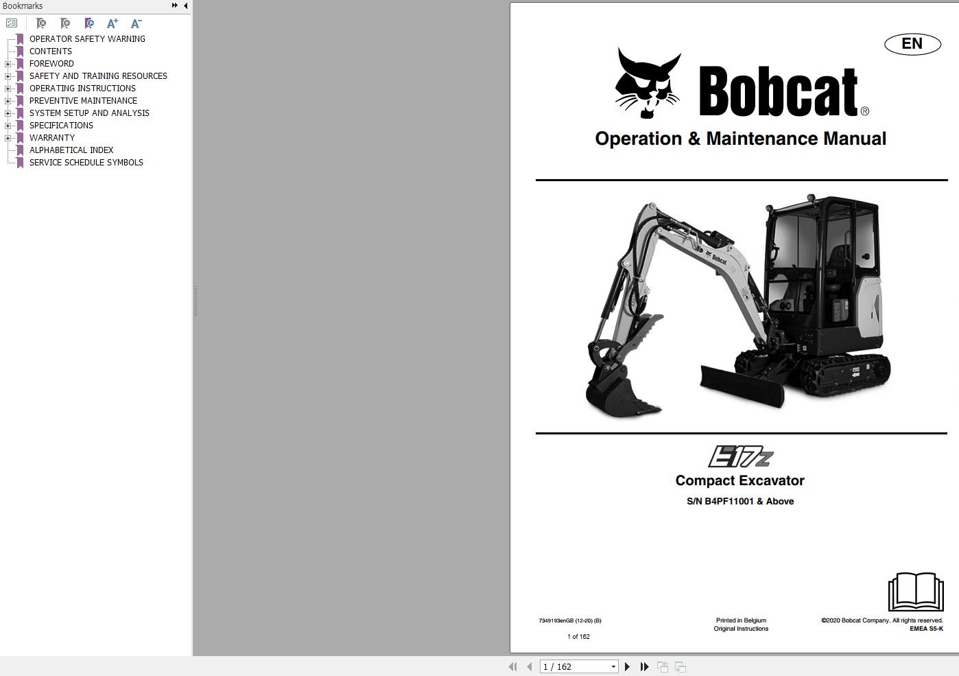 Bobcat E17z Operation And Maintenance Manual 7349193 2020 (162 Pages)