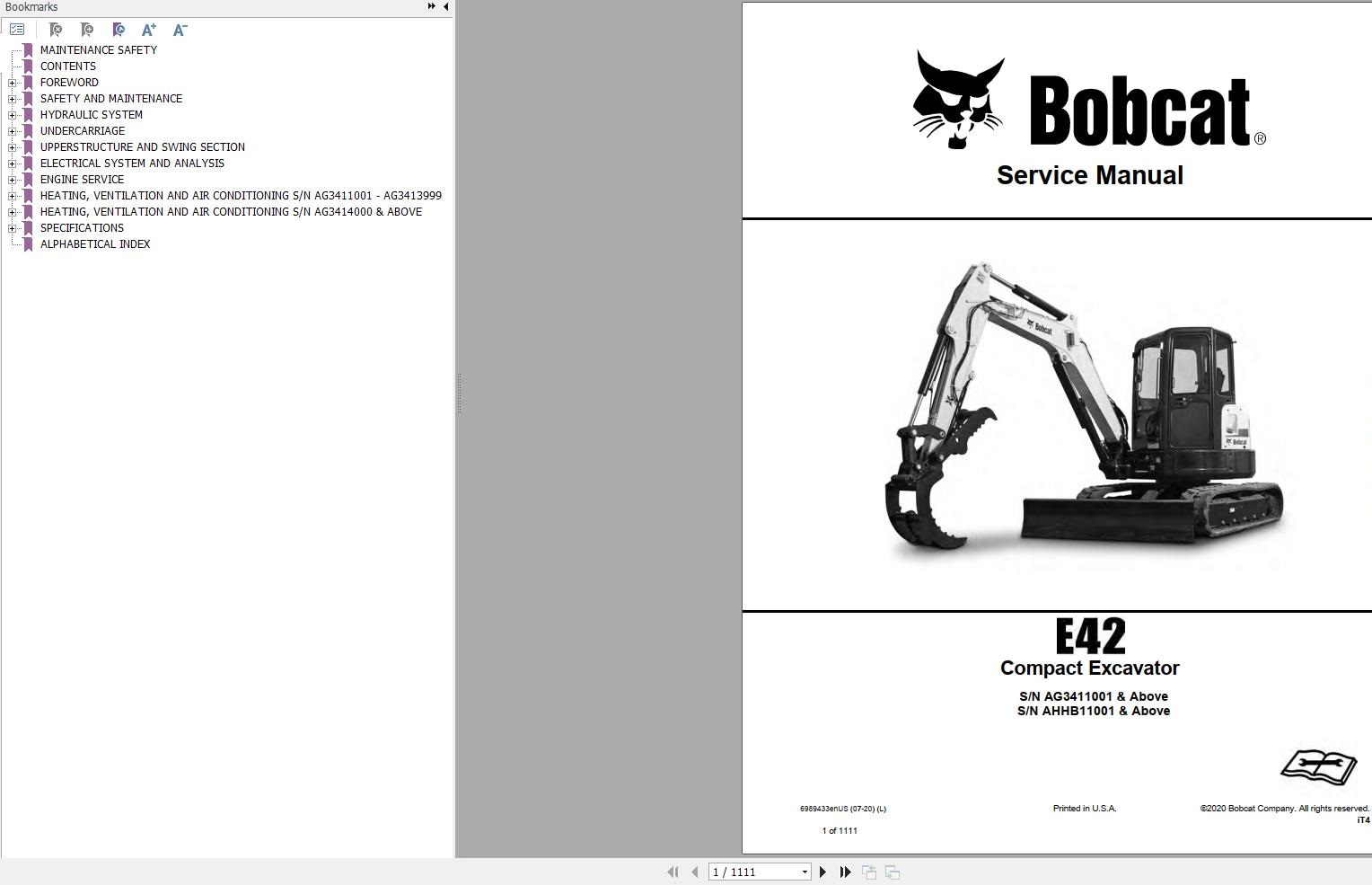 Bobcat E42 Service Manual 6989433 2020 (1111 Pages)