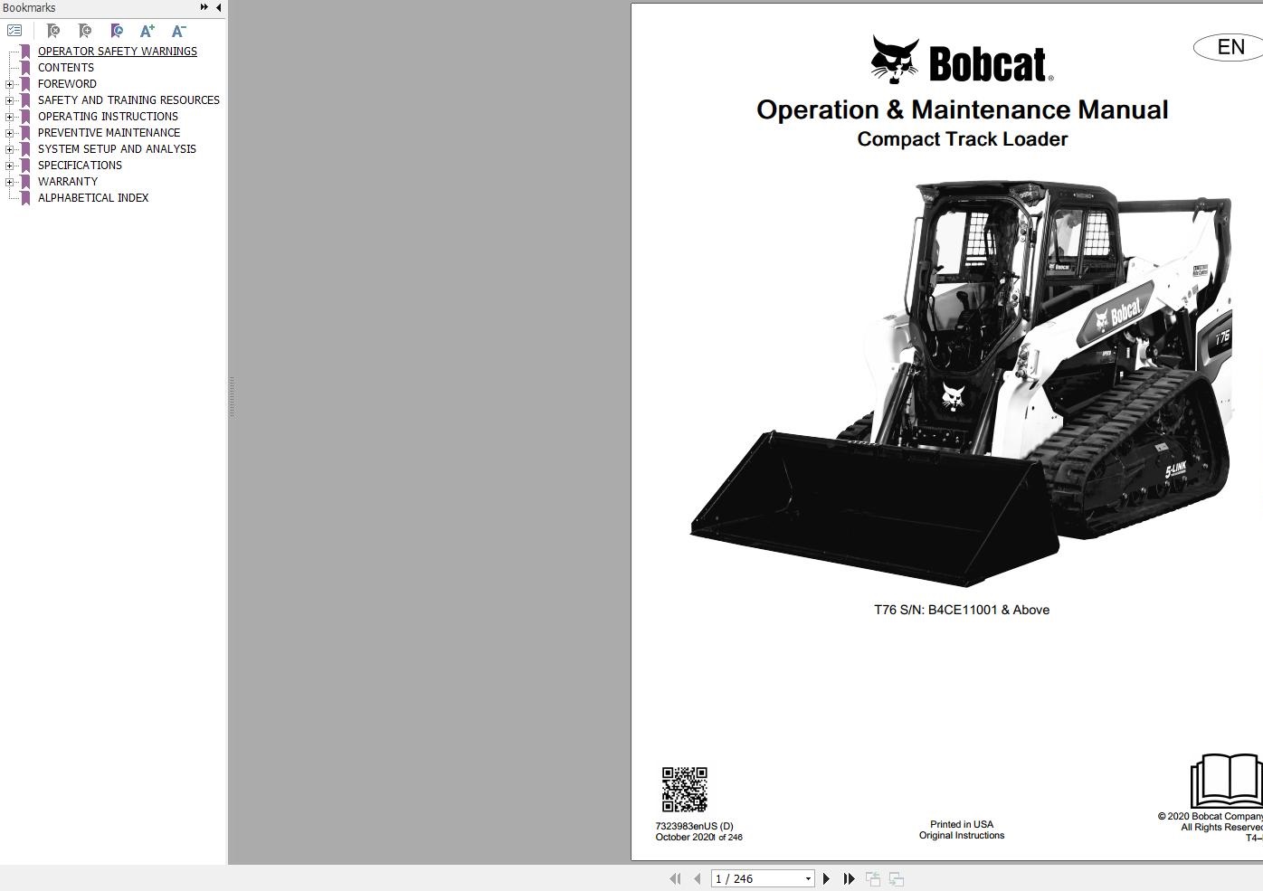 Bobcat T76 Operation And Maintenance Manual 7323983 2020 (246 Pages)
