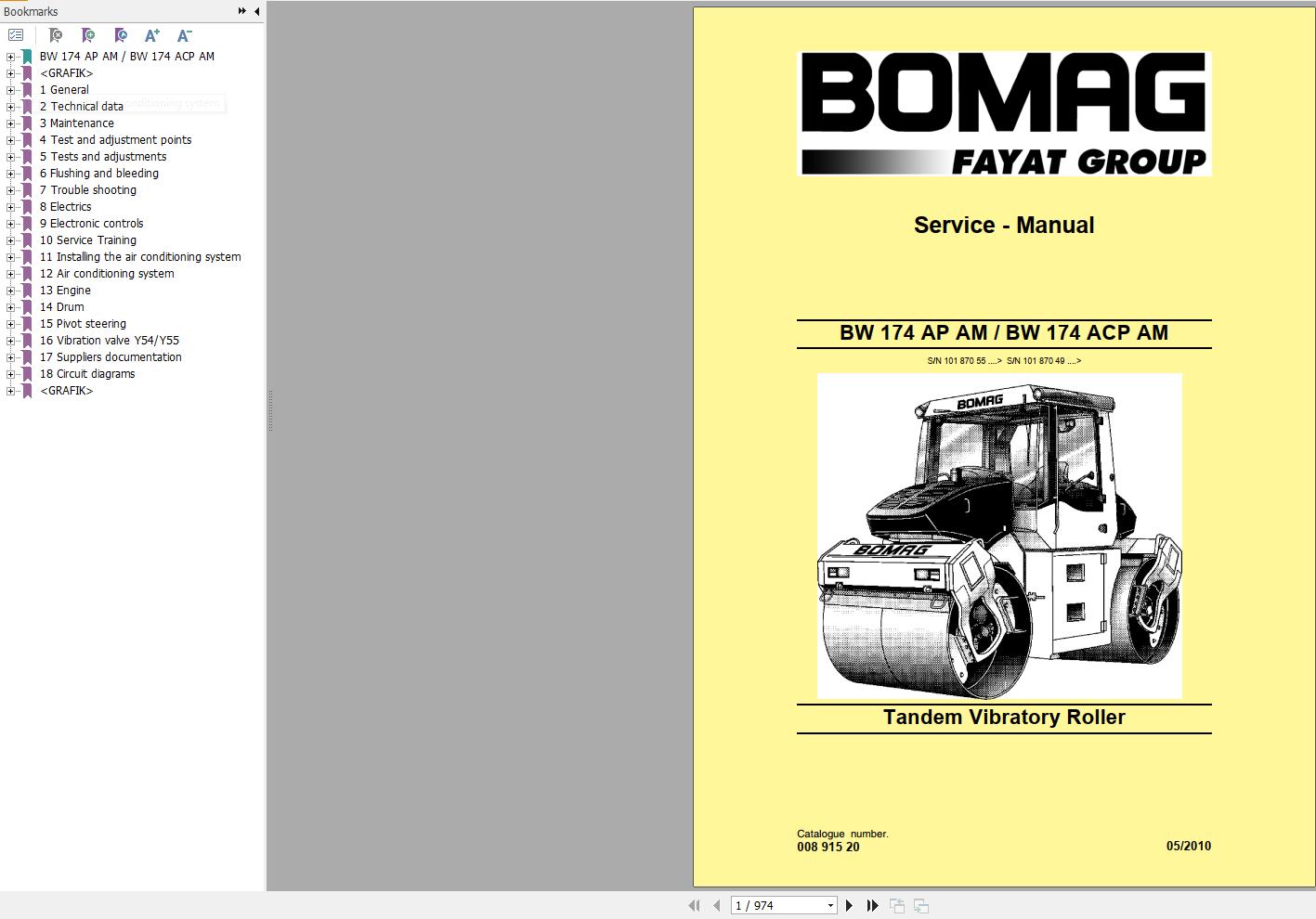 Bomag BW 174 ACP Roller Service Manual 00891520 05.2010 (974 Pages)