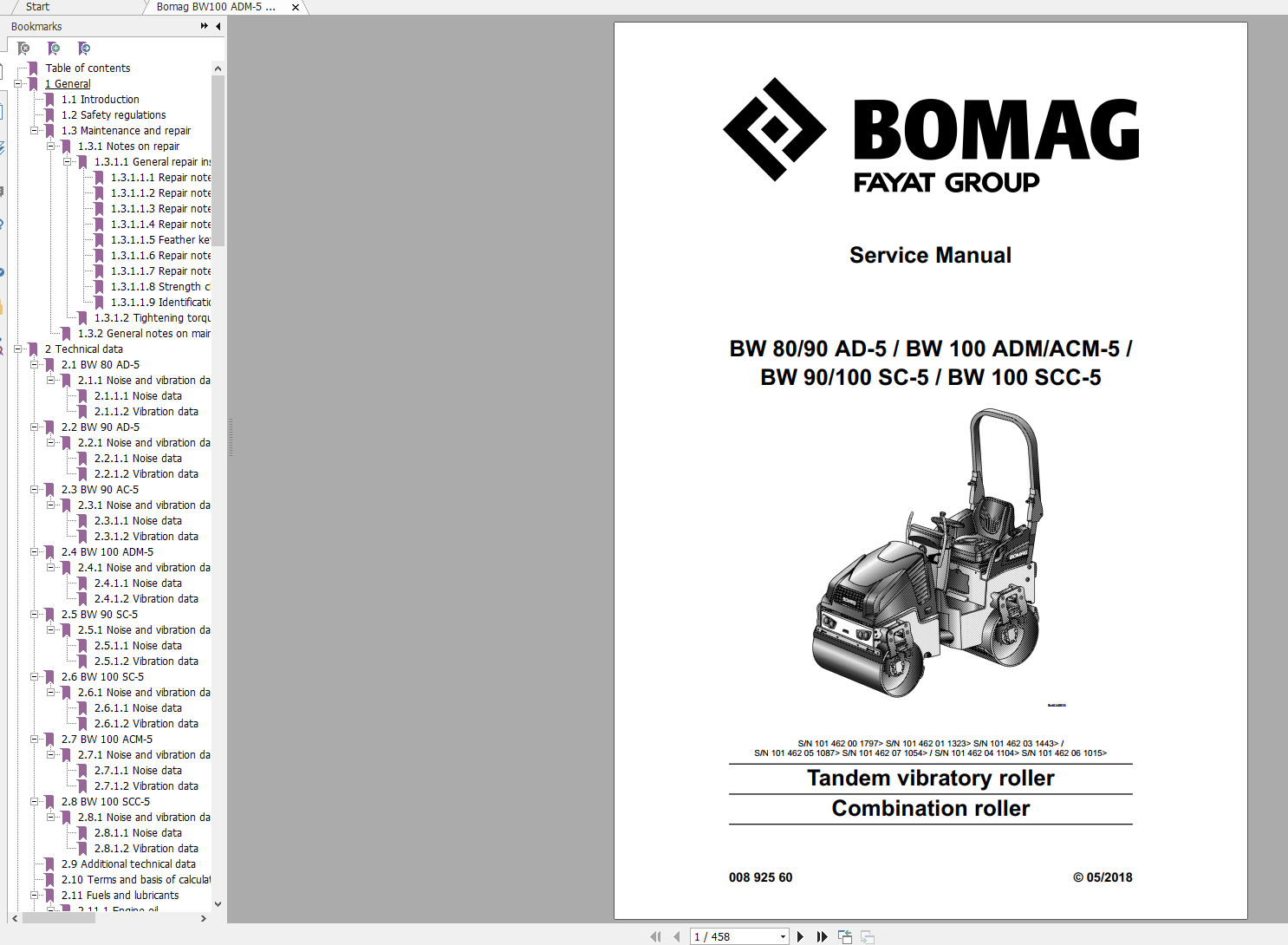 Bomag Combination Roller BW 90SC-5 Service Manual 00892560 2018 PDF