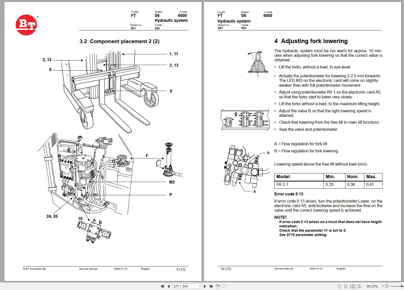 The Bookmarks of BT FRT 2000SE 2.0 N 2.7 Forklift Master Service Manual: