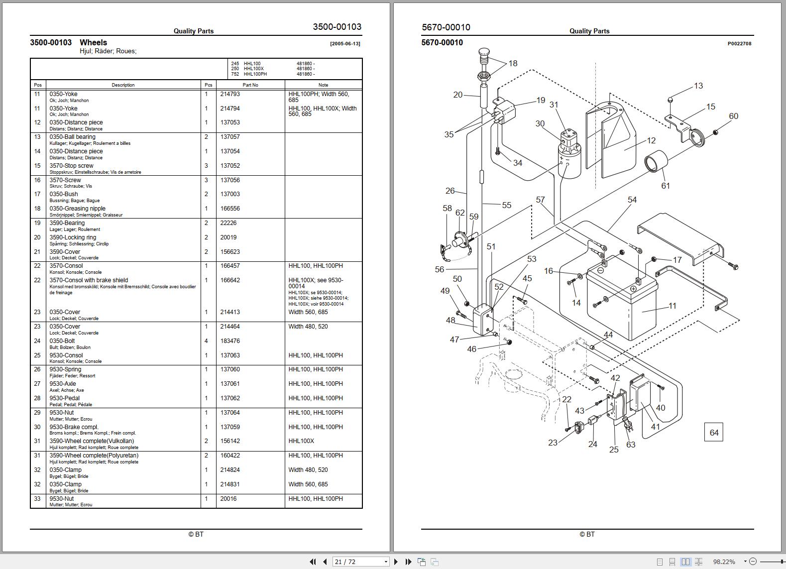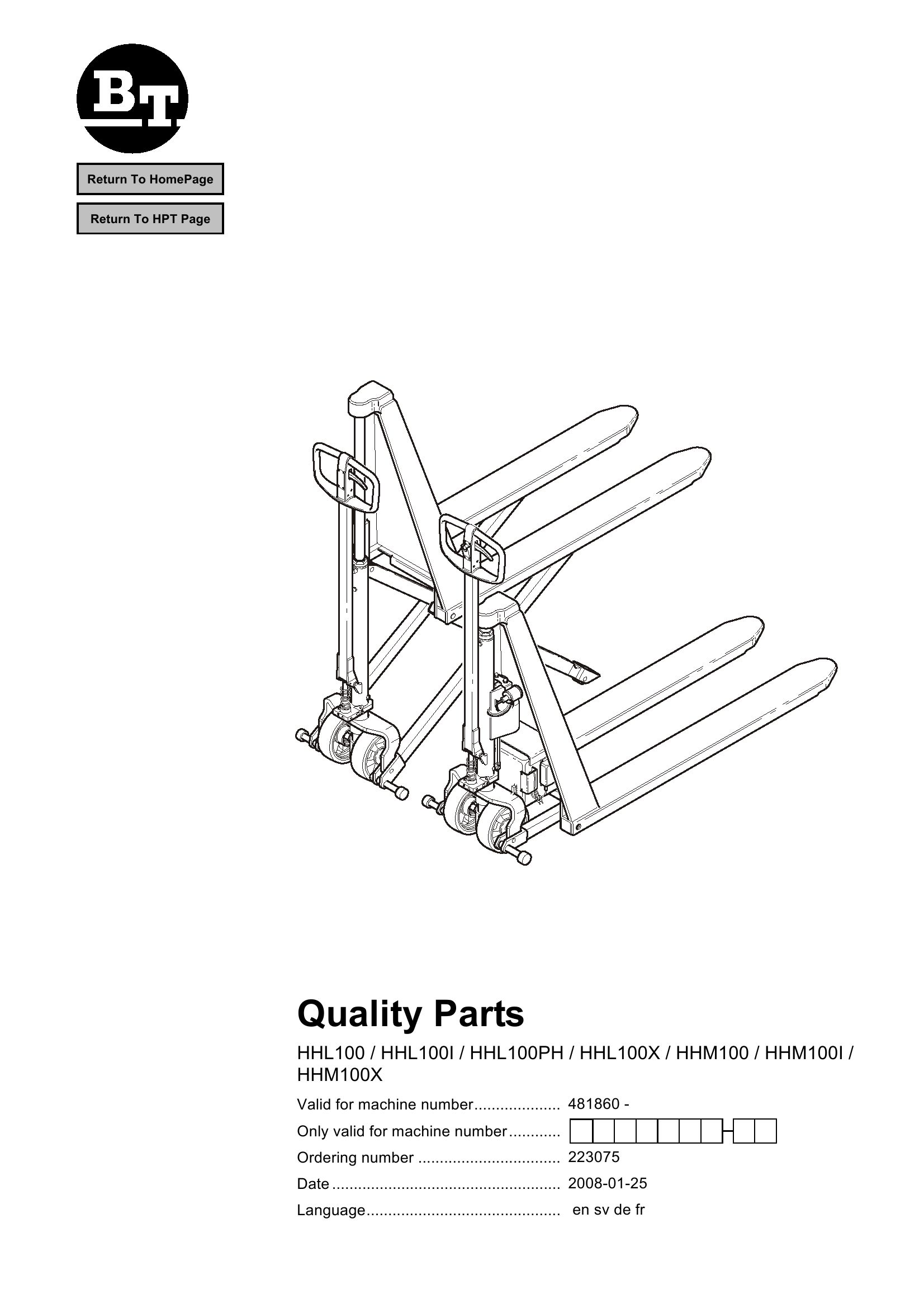 The Bookmarks of BT HHL100 to HHM100 Forklift Parts Catalog: