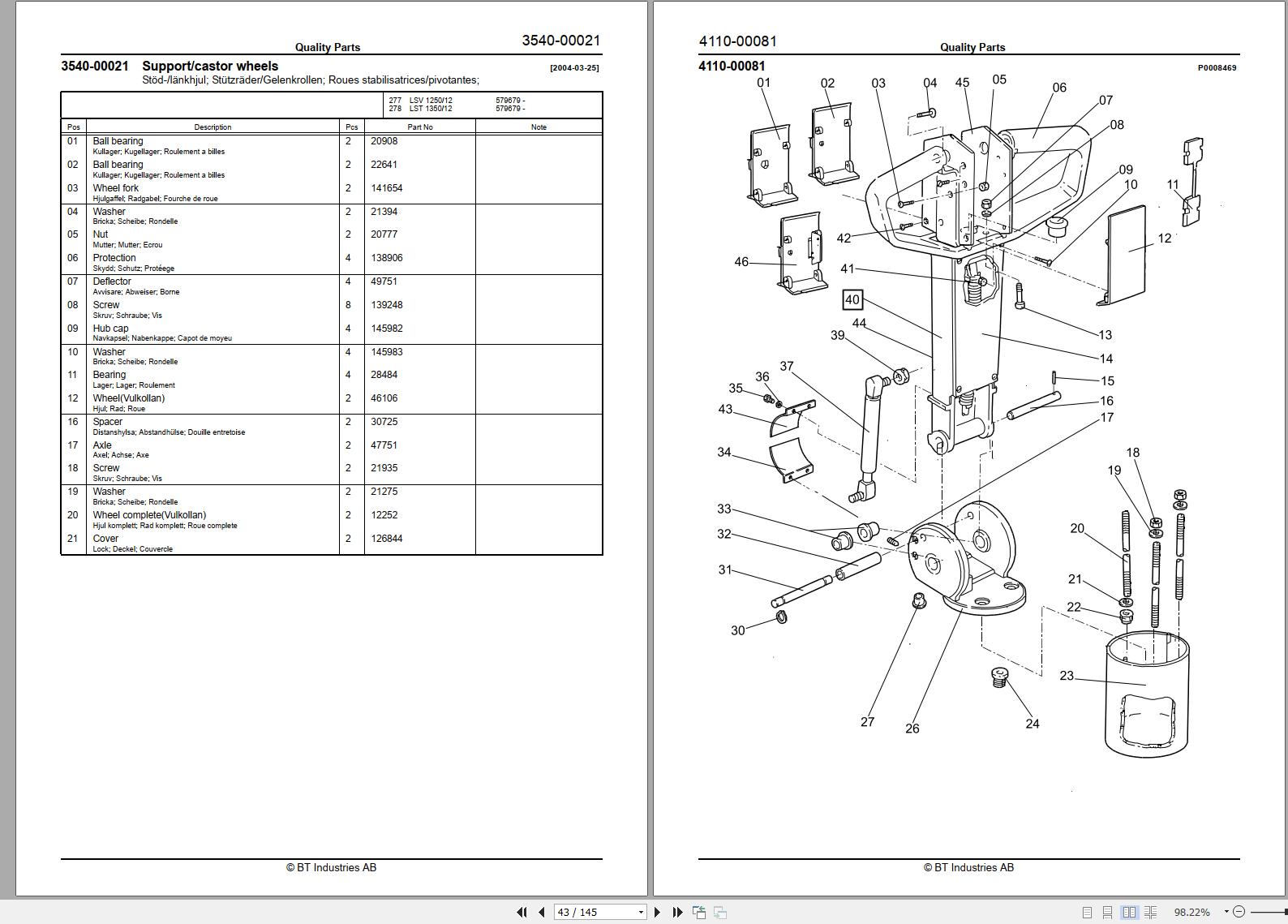 The Bookmarks of BT LST1350-12 LSV1250-12 Forklift Parts Catalog: