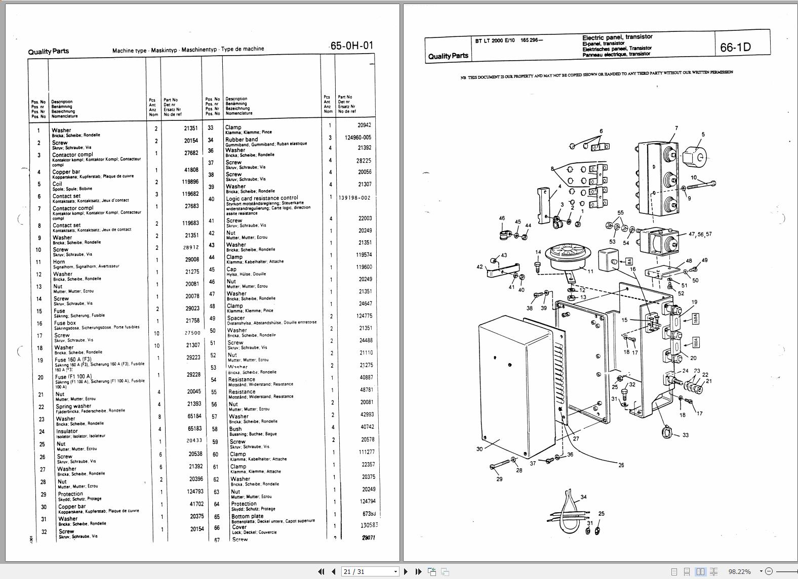 The Bookmarks of BT LT2000E-10 Forklift Parts Catalog: