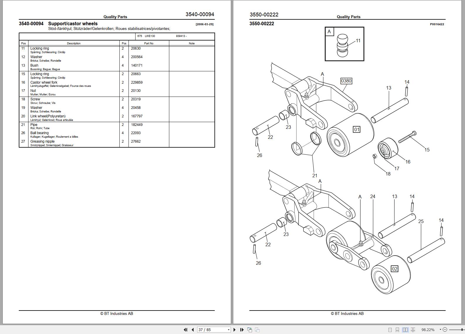 The Bookmarks of BT LWE130 Forklift Parts Catalog: