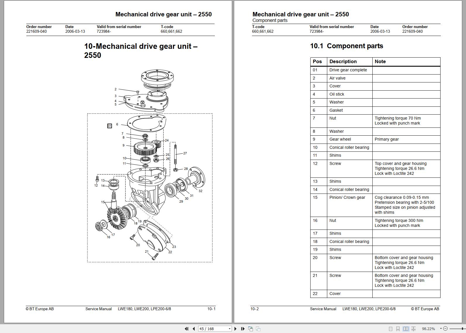 BT LWE180 LWE200 LPE200-6 LPE200-8 Service Manual 221609-040