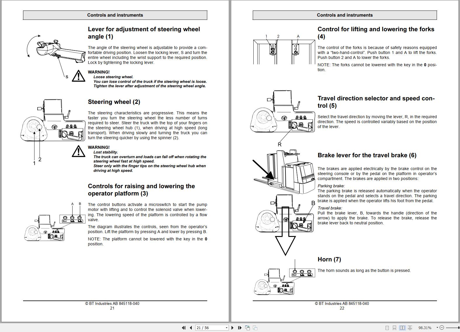 The Bookmarks of BT OS 1.0WL Forklift Operator's Manual: