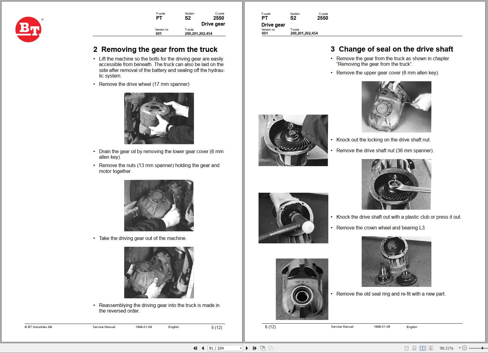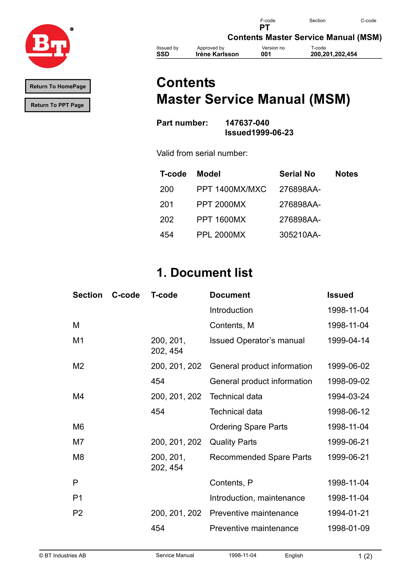 The Bookmarks of BT PPT1400 PPT1600 PT2000 Forklift Service Manual:
