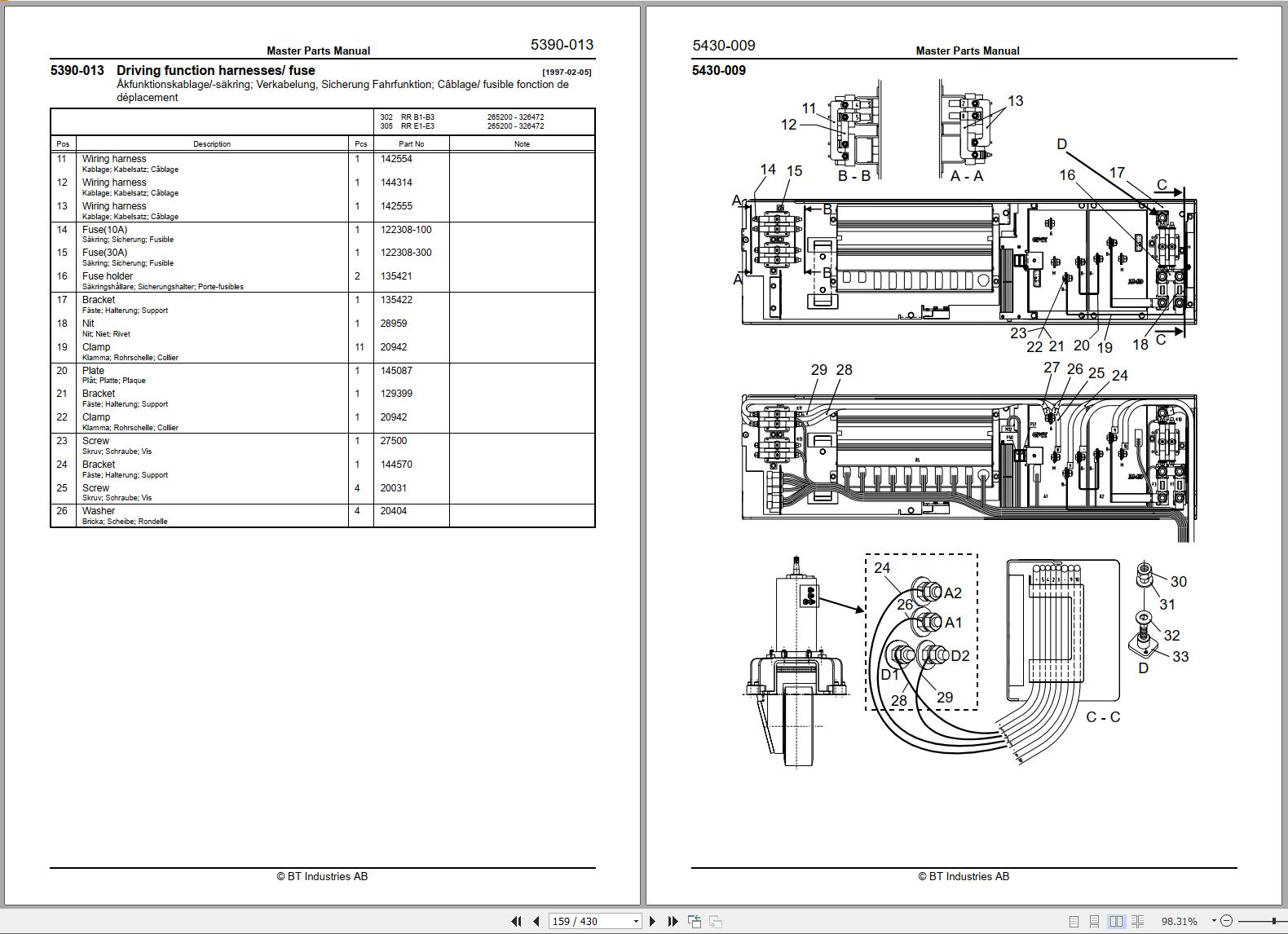 The Bookmarks of BT RR B1 B2 B3 E1 E2 E3(C) 14 DC Forklift Parts Catalog :