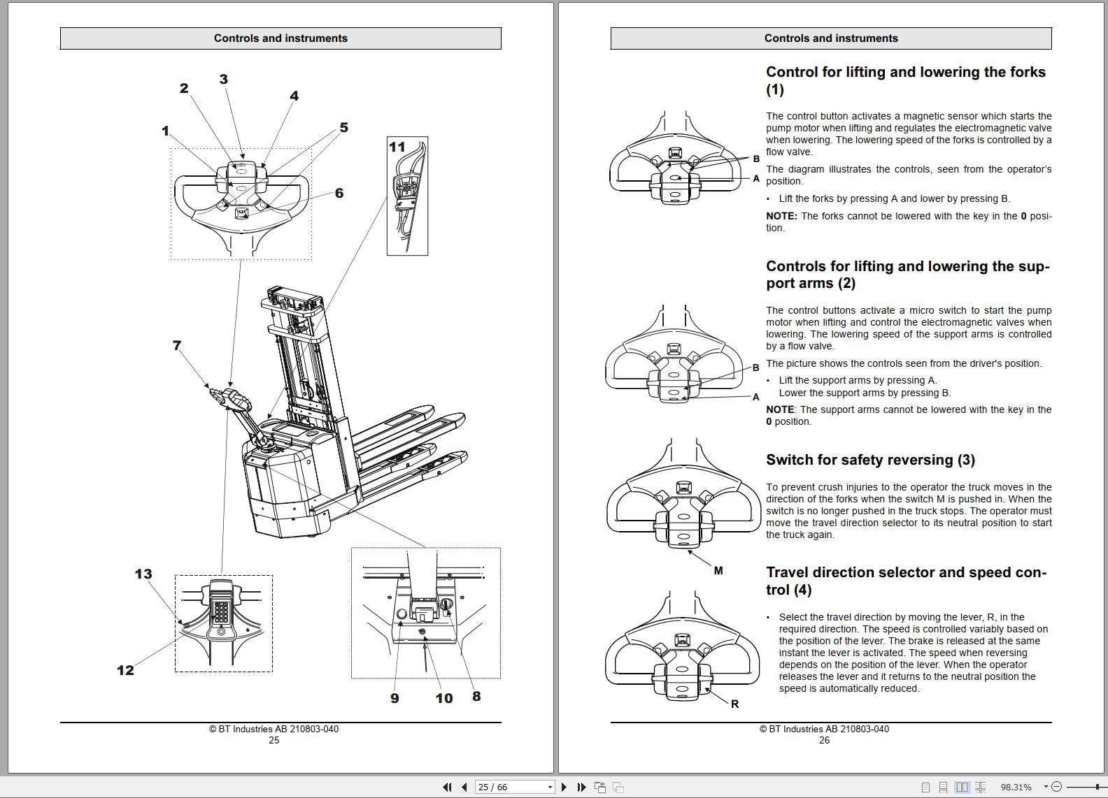 The Bookmarks of BT S 12F Forklift Operator's Manual: