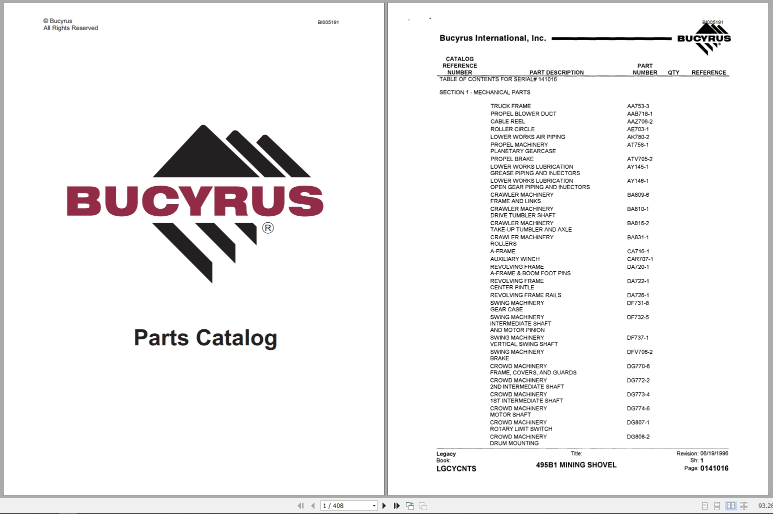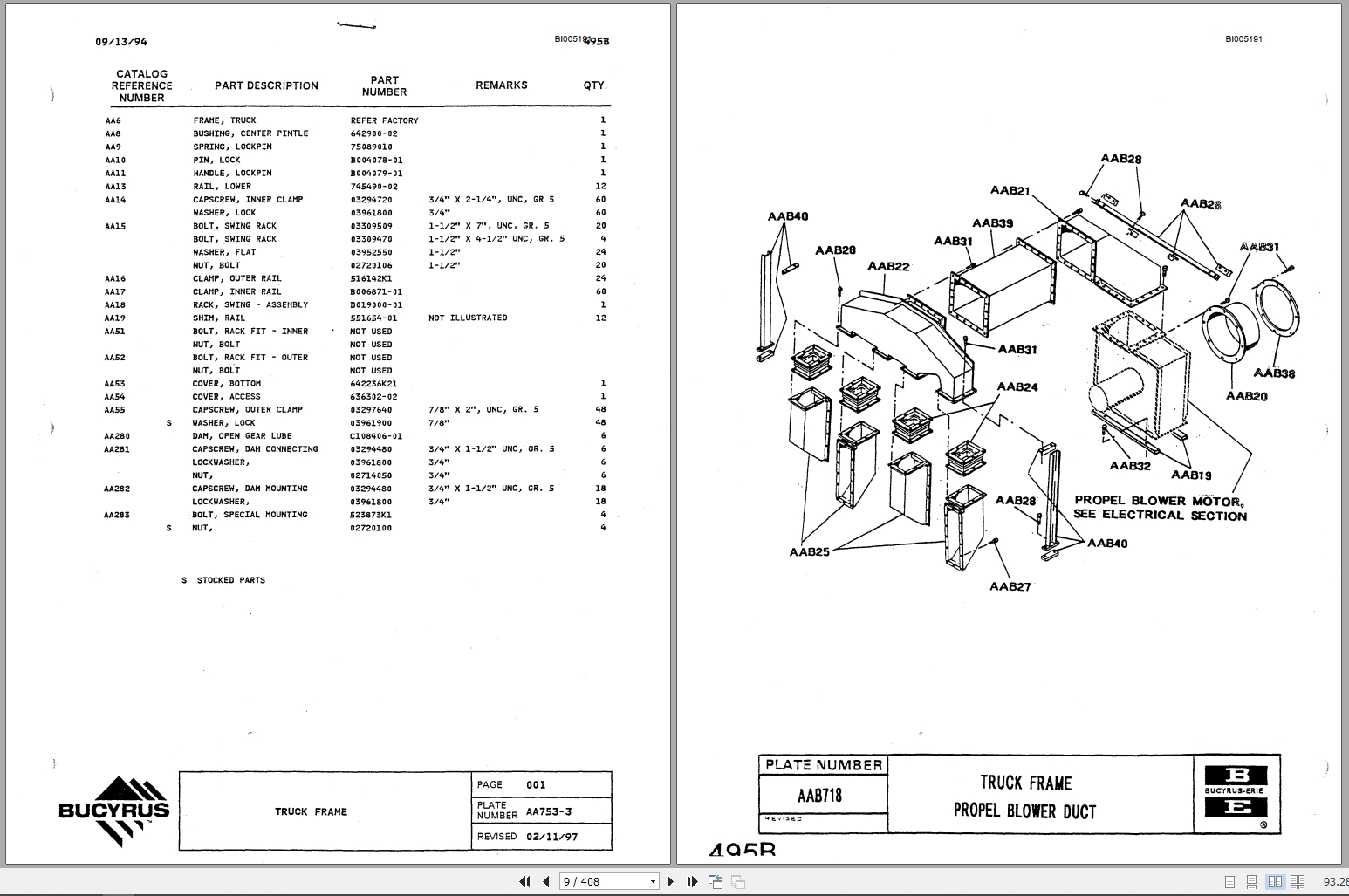 Bucyrus 495B1 Parts Catalog Wiring Diagram BI005191