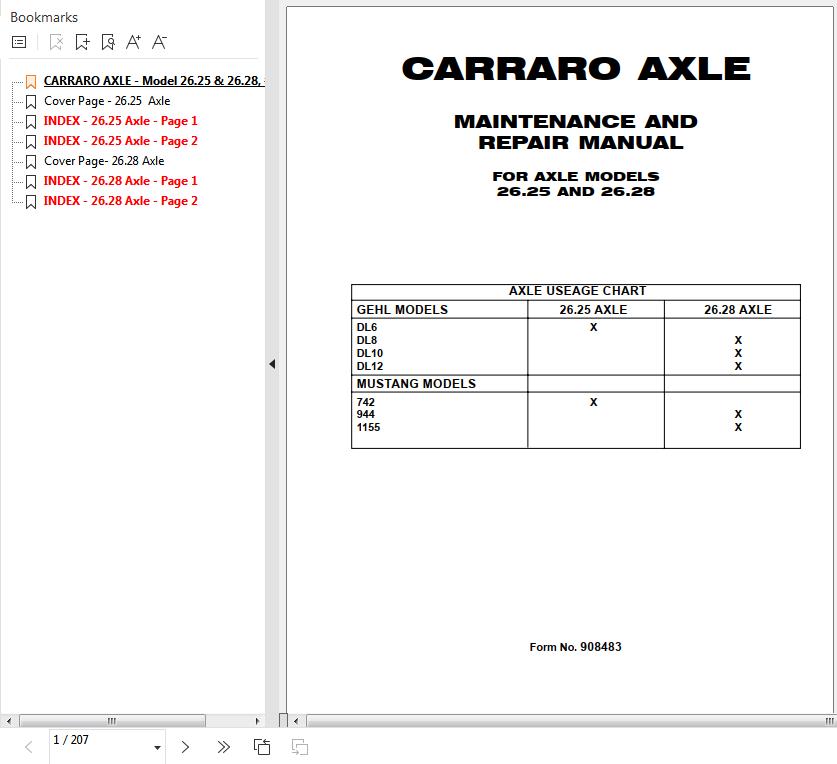 Carraro 26.25 26.28 Axle Maintenance and Repair Manual 908483