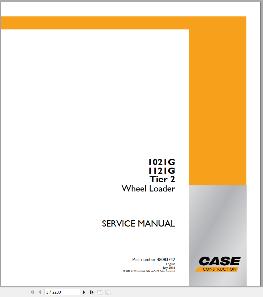 Case 1021F 1121F Tier 2 Service Manual 48083742
