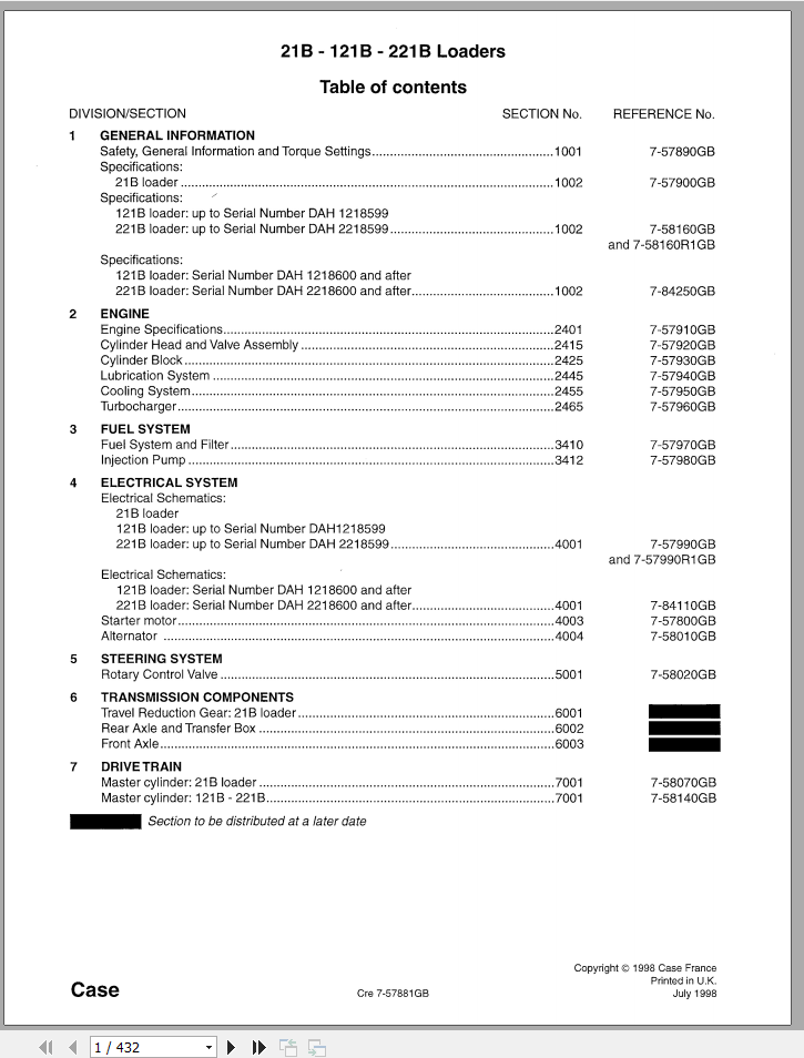 Case 21B 121B 221B Service Manual 7-79121