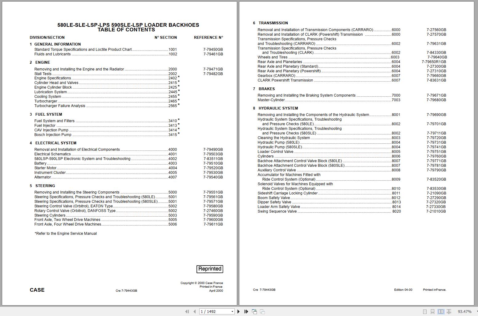 Case 580LE SLE LSP LPS 590SLE Service Manual 7-79443
