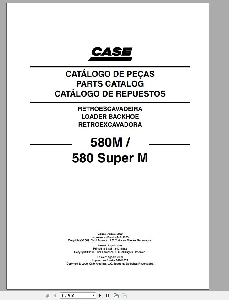 Case 580M 580 Super M Parts CatalogSize: 36.4 MBMachine: Loader BackhoeMachine Model: 580M 580 Super MPages: 810 Pages
