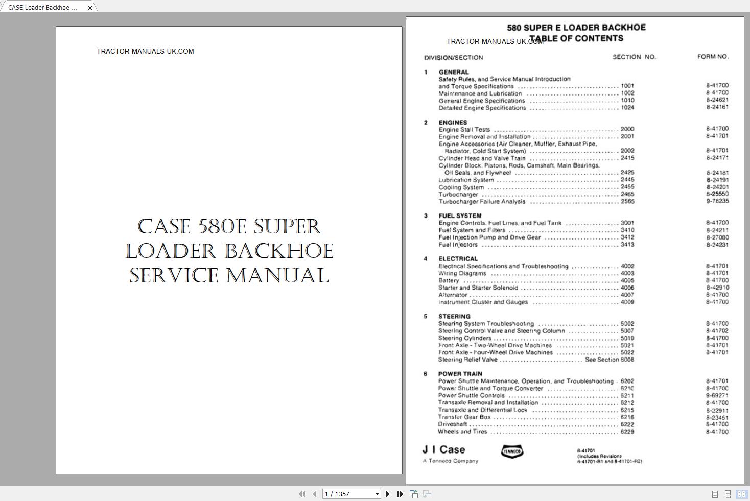 Case 580SE Super E Service ManualSize: 103 MBMachine: Loader BackhoeMachine Model: 580SEPages: 1357 Pages