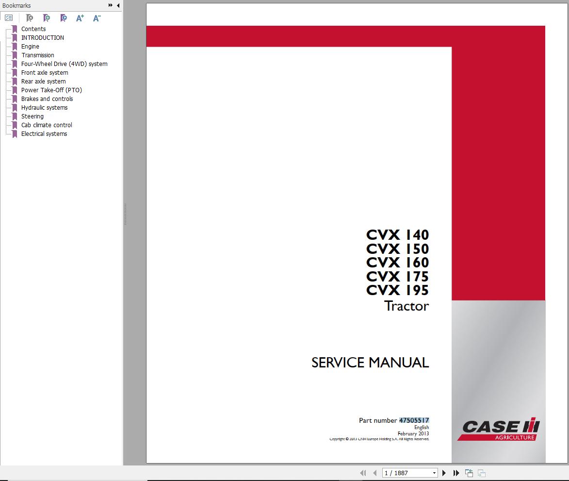 Case CVX140 CVX150 CVX160 CVX175 CVX195 Service Manual 47505517
