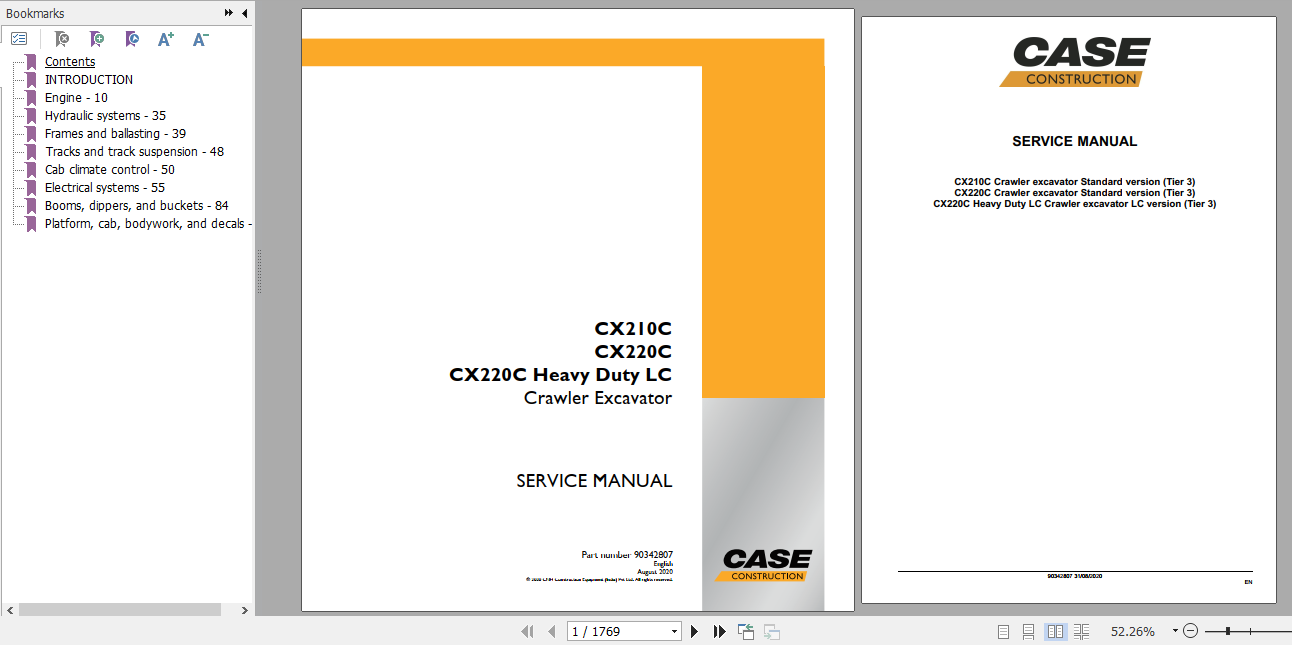 Case CX210C CX220C Heavy Duty LC Standard version (Tier 3) Service Manual 90342807
