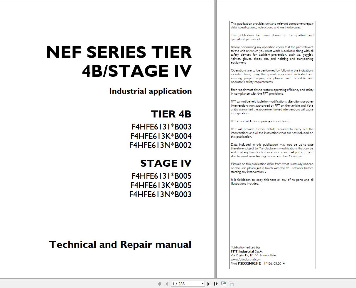 Case F4HFE613 Series NEF Tier 4B Stage IV Technical Repair Manual P2D32N028E