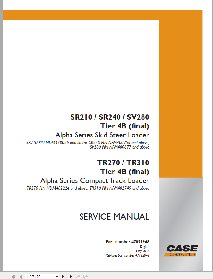 Case SR210 SR240 SV280 TR270 TR310 Tier 4B (final) Service Manual
