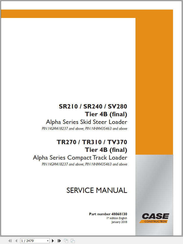 Case SR210 SR240 SV280 TR270 TR310 TV370 Tier 4B (final) Service Manual