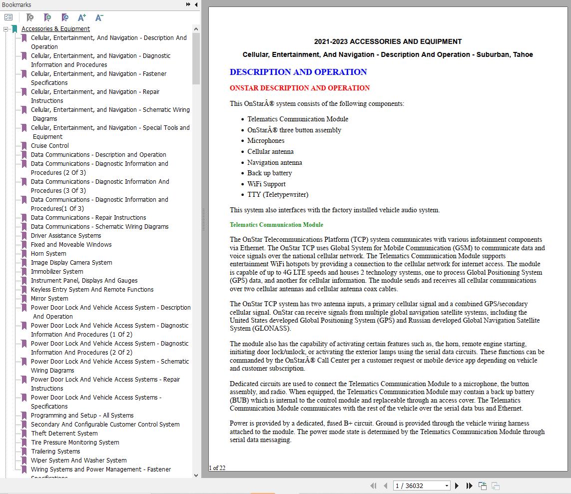 The Bookmarks of Chevrolet Tahoe & GMC Yukon 2021-2023 Service Repair Manual and Wiring Diagram: