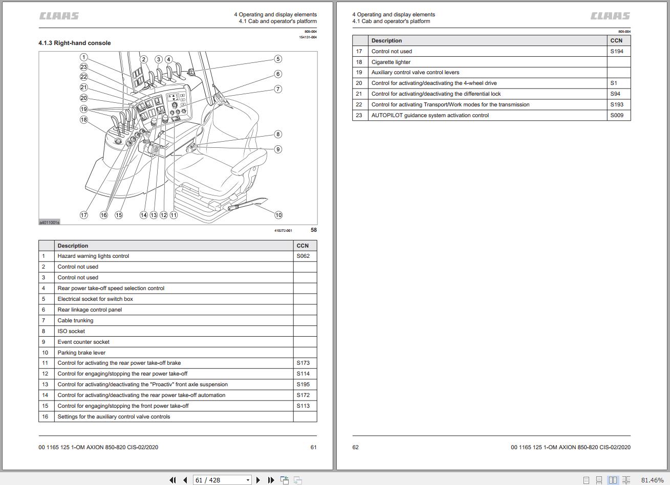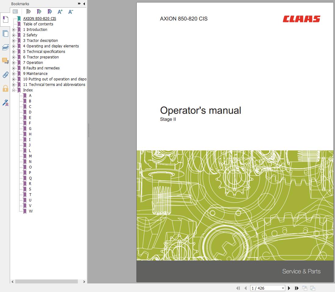 CLAAS AXION 850-820 CIS Stage II Operators Manual 00 1171 746 3 PDF