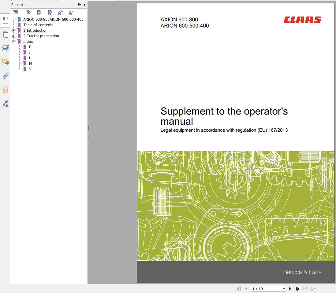 CLAAS AXION 900-800 ARION 600-500-400 Supplement Operators Manual 00 1170 296 2 PDF