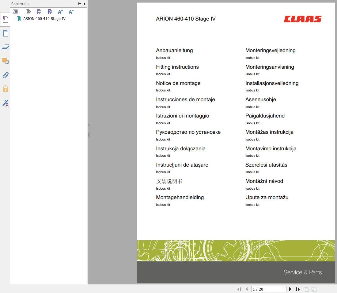 CLAAS ARION 460-410 Stage IV Isobus Kit Fitting Instructions 00 1169 332 0 PDF