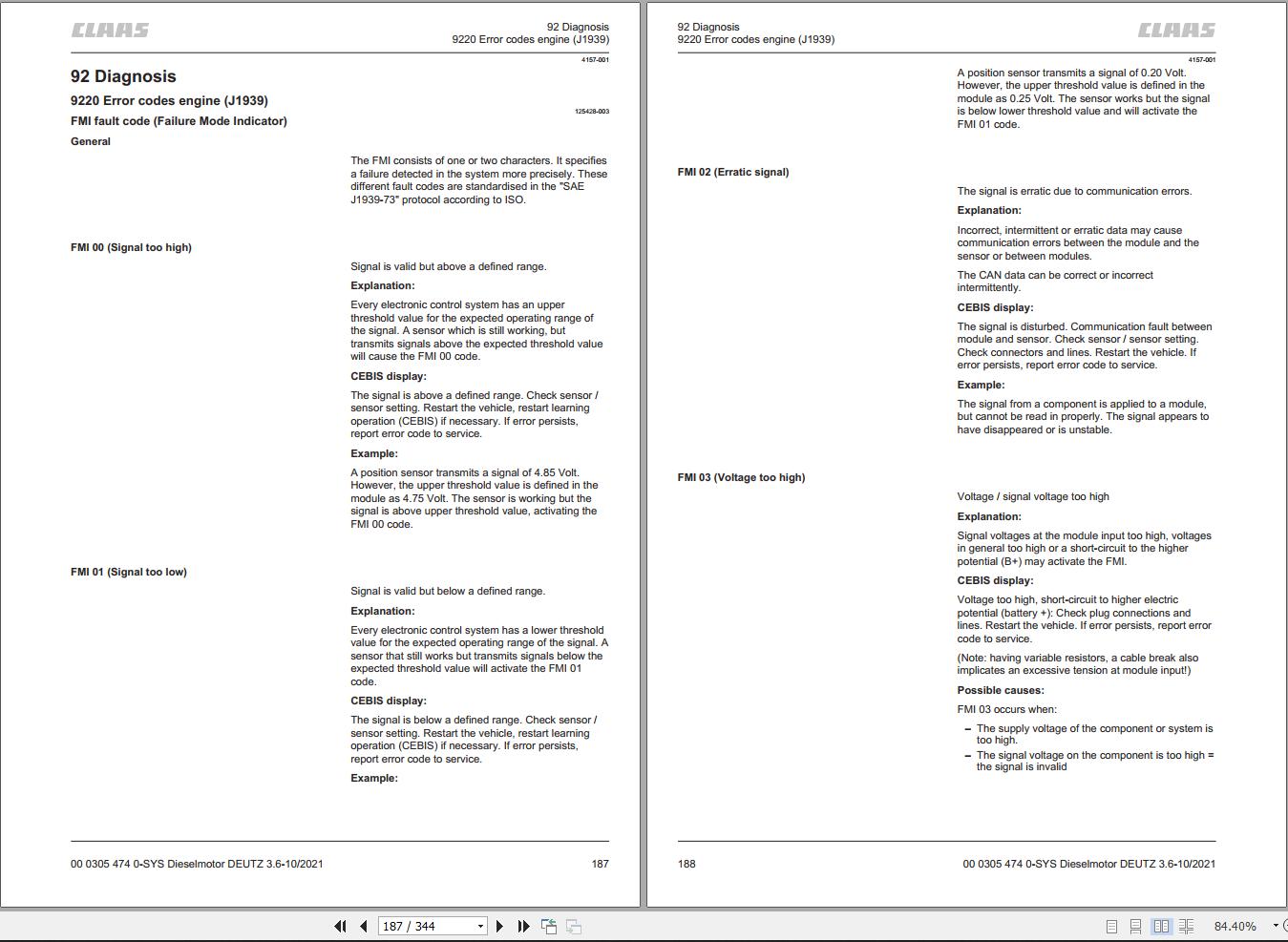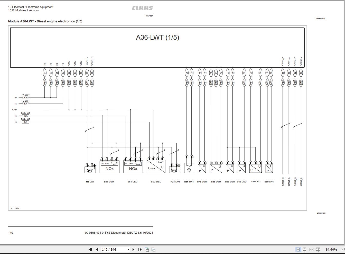 Claas Deutz Engine TCD 3.6 L4 Technical Systems 00 0305 474 0